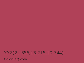 XYZ 21.556,13.715,10.744 Color is a normal red color and the nearest color is Hippie Pink #ae4560. Hex code #b04158 and RGB value is rgb(176,65,88). In RGB color space, this color is composed of 69% red, 25% green, 35% blue, In CMYK color space, this color is composed of 0% cyan, 63% magenta, 50% yellow , 31% black , In HSL color space, this color has a hue angle of 348° , 46% saturation and 47% lightness.