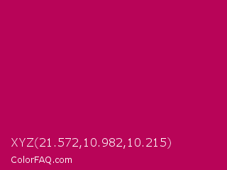 XYZ 21.572,10.982,10.215 Color is a normal rose color and the nearest color is Pictorial Carmine #c30b4e. Hex code #b80458 and RGB value is rgb(184,4,88). In RGB color space, this color is composed of 72% red, 2% green, 35% blue, In CMYK color space, this color is composed of 0% cyan, 98% magenta, 52% yellow , 28% black , In HSL color space, this color has a hue angle of 332° , 96% saturation and 37% lightness.