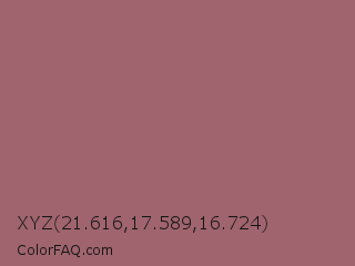 XYZ 21.616,17.589,16.724 Color is a normal red color and the nearest color is Rose Dust #9e5e6f. Hex code #9f646d and RGB value is rgb(159,100,109). In RGB color space, this color is composed of 62% red, 39% green, 43% blue, In CMYK color space, this color is composed of 0% cyan, 37% magenta, 31% yellow , 38% black , In HSL color space, this color has a hue angle of 351° , 24% saturation and 51% lightness.