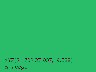 XYZ 21.702,37.907,19.538 Color is a normal green color and the nearest color is Medium Sea Green #3cb371. Hex code #2abd69 and RGB value is rgb(42,189,105). In RGB color space, this color is composed of 16% red, 74% green, 41% blue, In CMYK color space, this color is composed of 78% cyan, 0% magenta, 44% yellow , 26% black , In HSL color space, this color has a hue angle of 146° , 64% saturation and 45% lightness.