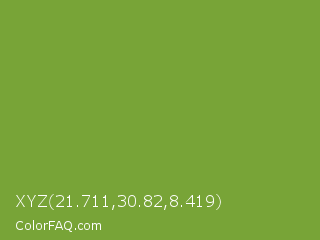 XYZ 21.711,30.82,8.419 Color is a normal green color and the nearest color is Sushi #87ab39. Hex code #78a437 and RGB value is rgb(120,164,55). In RGB color space, this color is composed of 47% red, 64% green, 22% blue, In CMYK color space, this color is composed of 27% cyan, 0% magenta, 66% yellow , 36% black , In HSL color space, this color has a hue angle of 84° , 50% saturation and 43% lightness.