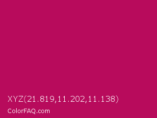 XYZ 21.819,11.202,11.138 Color is a normal rose color and the nearest color is Lipstick #ab0563. Hex code #b80b5c and RGB value is rgb(184,11,92). In RGB color space, this color is composed of 72% red, 4% green, 36% blue, In CMYK color space, this color is composed of 0% cyan, 94% magenta, 50% yellow , 28% black , In HSL color space, this color has a hue angle of 332° , 89% saturation and 38% lightness.