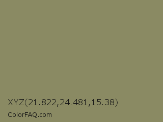 XYZ 21.822,24.481,15.38 Color is a normal yellow color and the nearest color is Avocado Pulp #888d65. Hex code #8a8a63 and RGB value is rgb(138,138,99). In RGB color space, this color is composed of 54% red, 54% green, 39% blue, In CMYK color space, this color is composed of 0% cyan, 0% magenta, 28% yellow , 46% black , In HSL color space, this color has a hue angle of 60° , 16% saturation and 46% lightness.