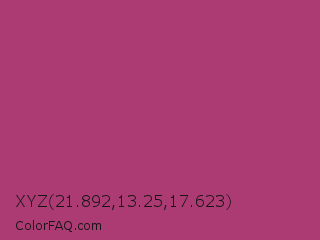 XYZ 21.892,13.25,17.623 Color is a normal rose color and the nearest color is Royal Heath #ab3472. Hex code #ad3b73 and RGB value is rgb(173,59,115). In RGB color space, this color is composed of 68% red, 23% green, 45% blue, In CMYK color space, this color is composed of 0% cyan, 66% magenta, 34% yellow , 32% black , In HSL color space, this color has a hue angle of 331° , 49% saturation and 45% lightness.