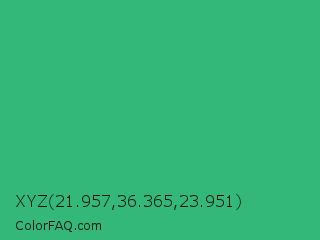 XYZ 21.957,36.365,23.951 Color is a normal green color and the nearest color is Medium Sea Green #3cb371. Hex code #33b879 and RGB value is rgb(51,184,121). In RGB color space, this color is composed of 20% red, 72% green, 47% blue, In CMYK color space, this color is composed of 72% cyan, 0% magenta, 34% yellow , 28% black , In HSL color space, this color has a hue angle of 152° , 57% saturation and 46% lightness.