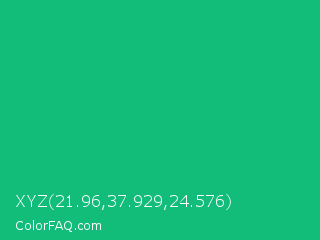 XYZ 21.96,37.929,24.576 Color is a normal green color and the nearest color is Mountain Meadow Crayola #1ab385. Hex code #12bd7a and RGB value is rgb(18,189,122). In RGB color space, this color is composed of 7% red, 74% green, 48% blue, In CMYK color space, this color is composed of 90% cyan, 0% magenta, 35% yellow , 26% black , In HSL color space, this color has a hue angle of 156° , 83% saturation and 41% lightness.