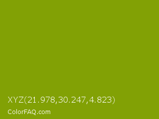 XYZ 21.978,30.247,4.823 Color is a normal lime color and the nearest color is Limeade #6f9d02. Hex code #82a105 and RGB value is rgb(130,161,5). In RGB color space, this color is composed of 51% red, 63% green, 2% blue, In CMYK color space, this color is composed of 19% cyan, 0% magenta, 97% yellow , 37% black , In HSL color space, this color has a hue angle of 72° , 94% saturation and 33% lightness.