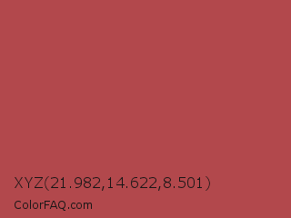 XYZ 21.982,14.622,8.501 Color is a normal red color and the nearest color is English Red #ab4b52. Hex code #b2484c and RGB value is rgb(178,72,76). In RGB color space, this color is composed of 70% red, 28% green, 30% blue, In CMYK color space, this color is composed of 0% cyan, 60% magenta, 57% yellow , 30% black , In HSL color space, this color has a hue angle of 358° , 42% saturation and 49% lightness.