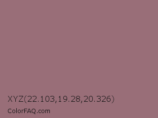 XYZ 22.103,19.28,20.326 Color is a normal red color and the nearest color is Bazaar #98777b. Hex code #996e78 and RGB value is rgb(153,110,120). In RGB color space, this color is composed of 60% red, 43% green, 47% blue, In CMYK color space, this color is composed of 0% cyan, 28% magenta, 22% yellow , 40% black , In HSL color space, this color has a hue angle of 346° , 17% saturation and 52% lightness.