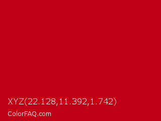 XYZ 22.128,11.392,1.742 Color is a normal red color and the nearest color is Harvard Crimson #c90016. Hex code #c10015 and RGB value is rgb(193,0,21). In RGB color space, this color is composed of 76% red, 0% green, 8% blue, In CMYK color space, this color is composed of 0% cyan, 100% magenta, 89% yellow , 24% black , In HSL color space, this color has a hue angle of 353° , 100% saturation and 38% lightness.