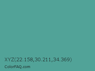 XYZ 22.158,30.211,34.369 Color is a normal cyan color and the nearest color is Polished Pine #5da493. Hex code #51a398 and RGB value is rgb(81,163,152). In RGB color space, this color is composed of 32% red, 64% green, 60% blue, In CMYK color space, this color is composed of 50% cyan, 0% magenta, 7% yellow , 36% black , In HSL color space, this color has a hue angle of 172° , 34% saturation and 48% lightness.