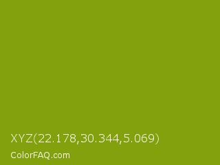 XYZ 22.178,30.344,5.069 Color is a normal lime color and the nearest color is Limeade #6f9d02. Hex code #83a10d and RGB value is rgb(131,161,13). In RGB color space, this color is composed of 51% red, 63% green, 5% blue, In CMYK color space, this color is composed of 19% cyan, 0% magenta, 92% yellow , 37% black , In HSL color space, this color has a hue angle of 72° , 85% saturation and 34% lightness.