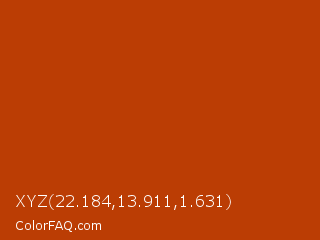 XYZ 22.184,13.911,1.631 Color is a normal orange color and the nearest color is Mahogany #c04000. Hex code #bb3d04 and RGB value is rgb(187,61,4). In RGB color space, this color is composed of 73% red, 24% green, 2% blue, In CMYK color space, this color is composed of 0% cyan, 67% magenta, 98% yellow , 27% black , In HSL color space, this color has a hue angle of 19° , 96% saturation and 37% lightness.