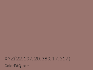 XYZ 22.197,20.389,17.517 Color is a normal red color and the nearest color is Hemp #907874. Hex code #99746e and RGB value is rgb(153,116,110). In RGB color space, this color is composed of 60% red, 45% green, 43% blue, In CMYK color space, this color is composed of 0% cyan, 24% magenta, 28% yellow , 40% black , In HSL color space, this color has a hue angle of 8° , 17% saturation and 52% lightness.