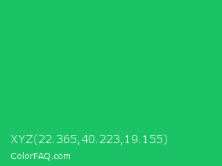XYZ 22.365,40.223,19.155 Color is a normal green color and the nearest color is Green Crayola #1cac78. Hex code #1bc366 and RGB value is rgb(27,195,102). In RGB color space, this color is composed of 11% red, 76% green, 40% blue, In CMYK color space, this color is composed of 86% cyan, 0% magenta, 48% yellow , 24% black , In HSL color space, this color has a hue angle of 147° , 76% saturation and 44% lightness.