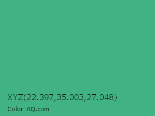XYZ 22.397,35.003,27.048 Color is a normal green color and the nearest color is Mint #3eb489. Hex code #41b383 and RGB value is rgb(65,179,131). In RGB color space, this color is composed of 25% red, 70% green, 51% blue, In CMYK color space, this color is composed of 64% cyan, 0% magenta, 27% yellow , 30% black , In HSL color space, this color has a hue angle of 155° , 47% saturation and 48% lightness.