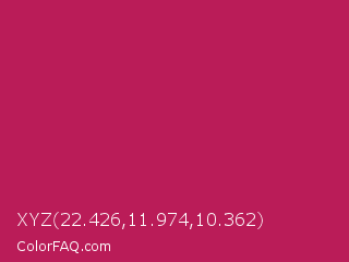 XYZ 22.426,11.974,10.362 Color is a normal rose color and the nearest color is Rose Red #c21e56. Hex code #ba1c58 and RGB value is rgb(186,28,88). In RGB color space, this color is composed of 73% red, 11% green, 35% blue, In CMYK color space, this color is composed of 0% cyan, 85% magenta, 53% yellow , 27% black , In HSL color space, this color has a hue angle of 337° , 74% saturation and 42% lightness.