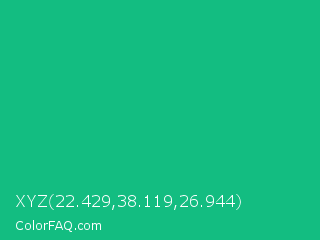 XYZ 22.429,38.119,26.944 Color is a normal green color and the nearest color is Mountain Meadow Crayola #1ab385. Hex code #13bd81 and RGB value is rgb(19,189,129). In RGB color space, this color is composed of 7% red, 74% green, 51% blue, In CMYK color space, this color is composed of 90% cyan, 0% magenta, 32% yellow , 26% black , In HSL color space, this color has a hue angle of 159° , 82% saturation and 41% lightness.