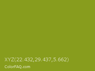 XYZ 22.432,29.437,5.662 Color is a normal yellow color and the nearest color is Trendy Green #7c881a. Hex code #889d1d and RGB value is rgb(136,157,29). In RGB color space, this color is composed of 53% red, 62% green, 11% blue, In CMYK color space, this color is composed of 13% cyan, 0% magenta, 82% yellow , 38% black , In HSL color space, this color has a hue angle of 70° , 69% saturation and 36% lightness.