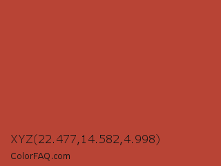 XYZ 22.477,14.582,4.998 Color is a normal red color and the nearest color is Mojo #c04737. Hex code #b84435 and RGB value is rgb(184,68,53). In RGB color space, this color is composed of 72% red, 27% green, 21% blue, In CMYK color space, this color is composed of 0% cyan, 63% magenta, 71% yellow , 28% black , In HSL color space, this color has a hue angle of 7° , 55% saturation and 46% lightness.