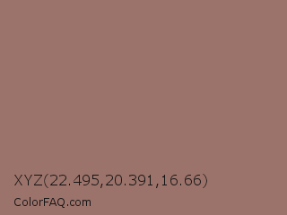 XYZ 22.495,20.391,16.66 Color is a normal red color and the nearest color is Toast #9a6e61. Hex code #9c736b and RGB value is rgb(156,115,107). In RGB color space, this color is composed of 61% red, 45% green, 42% blue, In CMYK color space, this color is composed of 0% cyan, 26% magenta, 31% yellow , 39% black , In HSL color space, this color has a hue angle of 10° , 20% saturation and 52% lightness.