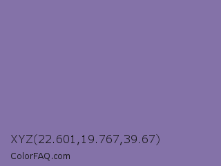 XYZ 22.601,19.767,39.67 Color is a normal indigo color and the nearest color is Kimberly #736c9f. Hex code #8472a8 and RGB value is rgb(132,114,168). In RGB color space, this color is composed of 52% red, 45% green, 66% blue, In CMYK color space, this color is composed of 21% cyan, 32% magenta, 0% yellow , 34% black , In HSL color space, this color has a hue angle of 260° , 24% saturation and 55% lightness.