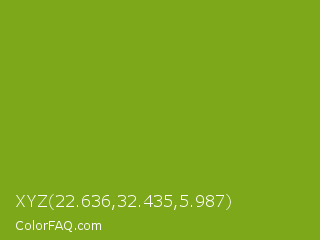 XYZ 22.636,32.435,5.987 Color is a normal lime color and the nearest color is Lima #76bd17. Hex code #7da819 and RGB value is rgb(125,168,25). In RGB color space, this color is composed of 49% red, 66% green, 10% blue, In CMYK color space, this color is composed of 26% cyan, 0% magenta, 85% yellow , 34% black , In HSL color space, this color has a hue angle of 78° , 74% saturation and 38% lightness.