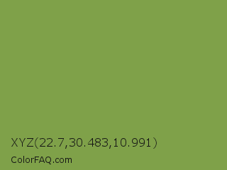 XYZ 22.7,30.483,10.991 Color is a normal green color and the nearest color is Asparagus Green #7ba05b. Hex code #7fa149 and RGB value is rgb(127,161,73). In RGB color space, this color is composed of 50% red, 63% green, 29% blue, In CMYK color space, this color is composed of 21% cyan, 0% magenta, 55% yellow , 37% black , In HSL color space, this color has a hue angle of 83° , 38% saturation and 46% lightness.