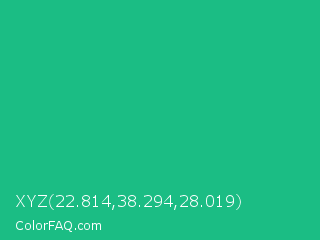 XYZ 22.814,38.294,28.019 Color is a normal green color and the nearest color is Mountain Meadow Crayola #1ab385. Hex code #1bbd84 and RGB value is rgb(27,189,132). In RGB color space, this color is composed of 11% red, 74% green, 52% blue, In CMYK color space, this color is composed of 86% cyan, 0% magenta, 30% yellow , 26% black , In HSL color space, this color has a hue angle of 159° , 75% saturation and 42% lightness.