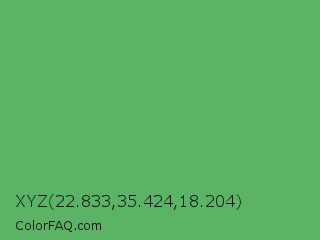 XYZ 22.833,35.424,18.204 Color is a normal green color and the nearest color is Fern #63b76c. Hex code #5bb366 and RGB value is rgb(91,179,102). In RGB color space, this color is composed of 36% red, 70% green, 40% blue, In CMYK color space, this color is composed of 49% cyan, 0% magenta, 43% yellow , 30% black , In HSL color space, this color has a hue angle of 128° , 37% saturation and 53% lightness.