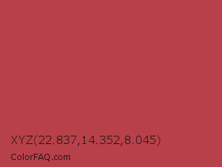 XYZ 22.837,14.352,8.045 Color is a normal red color and the nearest color is Deep Chestnut #b94e48. Hex code #b8404a and RGB value is rgb(184,64,74). In RGB color space, this color is composed of 72% red, 25% green, 29% blue, In CMYK color space, this color is composed of 0% cyan, 65% magenta, 60% yellow , 28% black , In HSL color space, this color has a hue angle of 355° , 48% saturation and 49% lightness.
