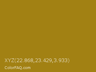 XYZ 22.868,23.429,3.933 Color is a normal yellow color and the nearest color is Reef Gold #9f821c. Hex code #a28113 and RGB value is rgb(162,129,19). In RGB color space, this color is composed of 64% red, 51% green, 7% blue, In CMYK color space, this color is composed of 0% cyan, 20% magenta, 88% yellow , 36% black , In HSL color space, this color has a hue angle of 46° , 79% saturation and 35% lightness.