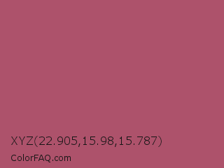 XYZ 22.905,15.98,15.787 Color is a normal rose color and the nearest color is China Rose #a8516e. Hex code #ad526b and RGB value is rgb(173,82,107). In RGB color space, this color is composed of 68% red, 32% green, 42% blue, In CMYK color space, this color is composed of 0% cyan, 53% magenta, 38% yellow , 32% black , In HSL color space, this color has a hue angle of 344° , 36% saturation and 50% lightness.