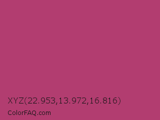 XYZ 22.953,13.972,16.816 Color is a normal rose color and the nearest color is Raspberry Rose #b3446c. Hex code #b23d70 and RGB value is rgb(178,61,112). In RGB color space, this color is composed of 70% red, 24% green, 44% blue, In CMYK color space, this color is composed of 0% cyan, 66% magenta, 37% yellow , 30% black , In HSL color space, this color has a hue angle of 334° , 49% saturation and 47% lightness.