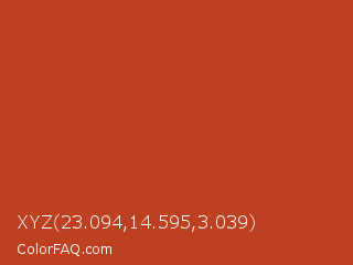 XYZ 23.094,14.595,3.039 Color is a normal red color and the nearest color is Dark Pastel Red #c23b22. Hex code #bd4021 and RGB value is rgb(189,64,33). In RGB color space, this color is composed of 74% red, 25% green, 13% blue, In CMYK color space, this color is composed of 0% cyan, 66% magenta, 83% yellow , 26% black , In HSL color space, this color has a hue angle of 12° , 70% saturation and 44% lightness.