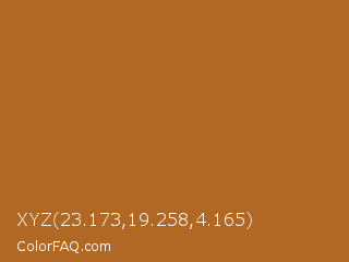 XYZ 23.173,19.258,4.165 Color is a normal orange color and the nearest color is Light Brown #b5651d. Hex code #b06824 and RGB value is rgb(176,104,36). In RGB color space, this color is composed of 69% red, 41% green, 14% blue, In CMYK color space, this color is composed of 0% cyan, 41% magenta, 80% yellow , 31% black , In HSL color space, this color has a hue angle of 29° , 66% saturation and 42% lightness.