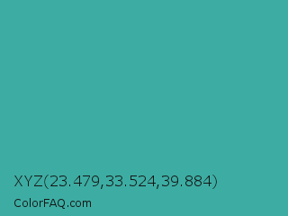 XYZ 23.479,33.524,39.884 Color is a normal cyan color and the nearest color is Keppel #3ab09e. Hex code #3dada3 and RGB value is rgb(61,173,163). In RGB color space, this color is composed of 24% red, 68% green, 64% blue, In CMYK color space, this color is composed of 65% cyan, 0% magenta, 6% yellow , 32% black , In HSL color space, this color has a hue angle of 175° , 48% saturation and 46% lightness.