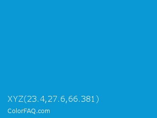XYZ 23.4,27.6,66.381 Color is a normal blue color and the nearest color is Rich Electric Blue #0892d0. Hex code #0a99d4 and RGB value is rgb(10,153,212). In RGB color space, this color is composed of 4% red, 60% green, 83% blue, In CMYK color space, this color is composed of 95% cyan, 28% magenta, 0% yellow , 17% black , In HSL color space, this color has a hue angle of 198° , 91% saturation and 44% lightness.