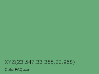XYZ 23.547,33.365,22.968 Color is a normal green color and the nearest color is Shiny Shamrock #5fa778. Hex code #67ab78 and RGB value is rgb(103,171,120). In RGB color space, this color is composed of 40% red, 67% green, 47% blue, In CMYK color space, this color is composed of 40% cyan, 0% magenta, 30% yellow , 33% black , In HSL color space, this color has a hue angle of 135° , 29% saturation and 54% lightness.