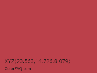 XYZ 23.563,14.726,8.079 Color is a normal red color and the nearest color is Deep Chestnut #b94e48. Hex code #bb404a and RGB value is rgb(187,64,74). In RGB color space, this color is composed of 73% red, 25% green, 29% blue, In CMYK color space, this color is composed of 0% cyan, 66% magenta, 60% yellow , 27% black , In HSL color space, this color has a hue angle of 355° , 49% saturation and 49% lightness.