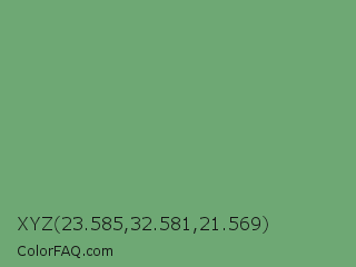 XYZ 23.585,32.581,21.569 Color is a normal green color and the nearest color is Aqua Forest #5fa777. Hex code #6ea874 and RGB value is rgb(110,168,116). In RGB color space, this color is composed of 43% red, 66% green, 45% blue, In CMYK color space, this color is composed of 35% cyan, 0% magenta, 31% yellow , 34% black , In HSL color space, this color has a hue angle of 126° , 25% saturation and 55% lightness.
