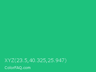 XYZ 23.5,40.325,25.947 Color is a normal green color and the nearest color is Mountain Meadow Crayola #1ab385. Hex code #1dc27d and RGB value is rgb(29,194,125). In RGB color space, this color is composed of 11% red, 76% green, 49% blue, In CMYK color space, this color is composed of 85% cyan, 0% magenta, 36% yellow , 24% black , In HSL color space, this color has a hue angle of 155° , 74% saturation and 44% lightness.