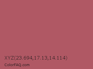XYZ 23.694,17.13,14.114 Color is a normal red color and the nearest color is Deep Puce #a95c68. Hex code #b05864 and RGB value is rgb(176,88,100). In RGB color space, this color is composed of 69% red, 35% green, 39% blue, In CMYK color space, this color is composed of 0% cyan, 50% magenta, 43% yellow , 31% black , In HSL color space, this color has a hue angle of 352° , 36% saturation and 52% lightness.