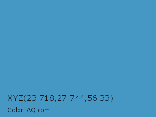 XYZ 23.718,27.744,56.33 Color is a normal blue color and the nearest color is Celestial Blue #4997d0. Hex code #4698c4 and RGB value is rgb(70,152,196). In RGB color space, this color is composed of 27% red, 60% green, 77% blue, In CMYK color space, this color is composed of 64% cyan, 22% magenta, 0% yellow , 23% black , In HSL color space, this color has a hue angle of 201° , 52% saturation and 52% lightness.