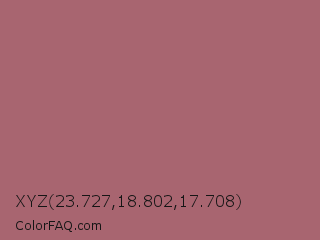 XYZ 23.727,18.802,17.708 Color is a normal red color and the nearest color is Coral Tree #a86b6b. Hex code #a86570 and RGB value is rgb(168,101,112). In RGB color space, this color is composed of 66% red, 40% green, 44% blue, In CMYK color space, this color is composed of 0% cyan, 40% magenta, 33% yellow , 34% black , In HSL color space, this color has a hue angle of 350° , 28% saturation and 53% lightness.