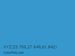 XYZ 23.769,27.649,61.842 Color is a normal blue color and the nearest color is Curious Blue #2596d1. Hex code #3698cd and RGB value is rgb(54,152,205). In RGB color space, this color is composed of 21% red, 60% green, 80% blue, In CMYK color space, this color is composed of 74% cyan, 26% magenta, 0% yellow , 20% black , In HSL color space, this color has a hue angle of 201° , 60% saturation and 51% lightness.