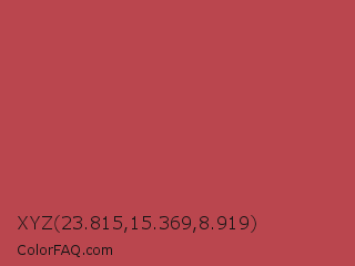 XYZ 23.815,15.369,8.919 Color is a normal red color and the nearest color is Deep Chestnut #b94e48. Hex code #ba464e and RGB value is rgb(186,70,78). In RGB color space, this color is composed of 73% red, 27% green, 31% blue, In CMYK color space, this color is composed of 0% cyan, 62% magenta, 58% yellow , 27% black , In HSL color space, this color has a hue angle of 356° , 46% saturation and 50% lightness.