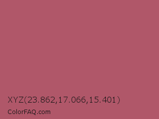 XYZ 23.862,17.066,15.401 Color is a normal red color and the nearest color is Deep Puce #a95c68. Hex code #b05769 and RGB value is rgb(176,87,105). In RGB color space, this color is composed of 69% red, 34% green, 41% blue, In CMYK color space, this color is composed of 0% cyan, 51% magenta, 40% yellow , 31% black , In HSL color space, this color has a hue angle of 348° , 36% saturation and 52% lightness.