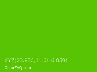 XYZ 23.876,41.61,6.859 Color is a normal green color and the nearest color is Kelly Green #4cbb17. Hex code #59c403 and RGB value is rgb(89,196,3). In RGB color space, this color is composed of 35% red, 77% green, 1% blue, In CMYK color space, this color is composed of 55% cyan, 0% magenta, 98% yellow , 23% black , In HSL color space, this color has a hue angle of 93° , 97% saturation and 39% lightness.