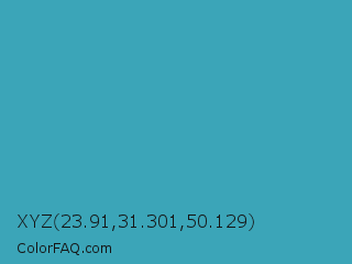 XYZ 23.91,31.301,50.129 Color is a normal cyan color and the nearest color is Pelorous #3eabbf. Hex code #3ba5b8 and RGB value is rgb(59,165,184). In RGB color space, this color is composed of 23% red, 65% green, 72% blue, In CMYK color space, this color is composed of 68% cyan, 10% magenta, 0% yellow , 28% black , In HSL color space, this color has a hue angle of 189° , 51% saturation and 48% lightness.